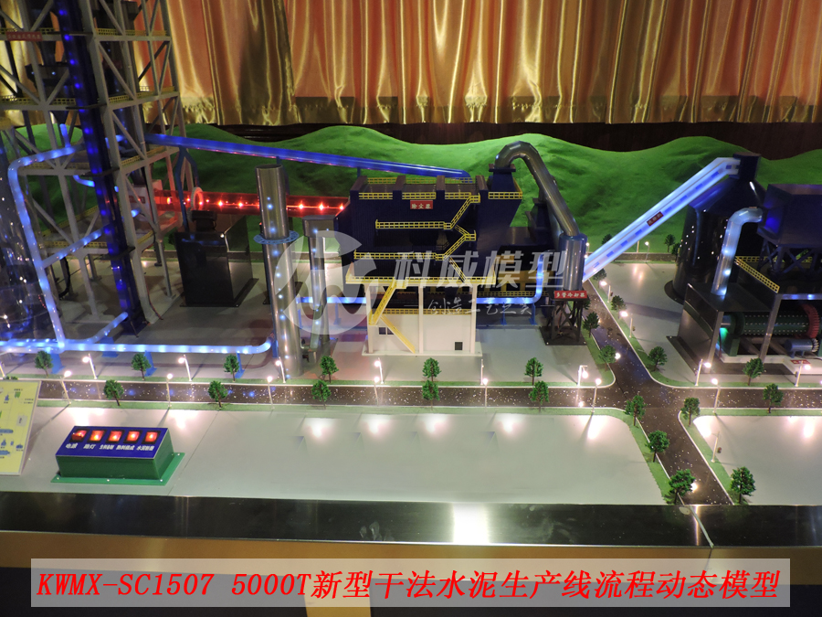 該模型根據客戶的需求,并參照新型干法水泥生產線廠區(qū)建筑總平面布置圖,按1:30(約)的模型比例微縮進行制作,模型可以完整顯示整個水泥生產線工藝流程,包括廠區(qū)環(huán)境以及工廠各單元生產設備的分布設施整體展現。